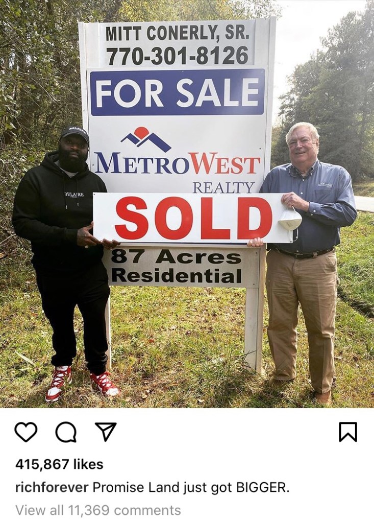 Rapper Rick Ross is making headlines after purchasing 87 acres of land in the state of Georgia. Already owning 254 acres, the artist wants to purchase as much land as he can.