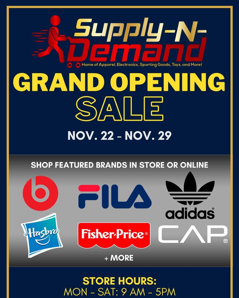 Based in Atlanta, GA, Supply-N-Demand offers apparel, electronics, sporting goods, toys, and more.
