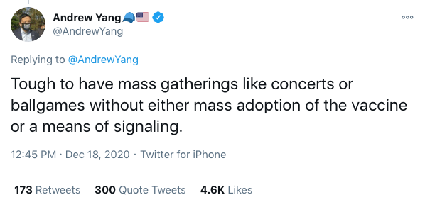 Former Presidential candidate Andrew Yang recently suggested on his Twitter account that Americans be assigned barcodes showing that they have been vaccinated for the coronavirus. He argues that instead of giving vaccination cards as proof of compliance, the government should issue a digital mark to each person that can be downloaded to their phones.
